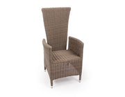 This luxurious chair features an extra-strong dusty polyurethane braid, offering both durability and style. Designed for ultimate comfort, it includes super-comfortable seating and an adjustable backrest for personalized relaxation.