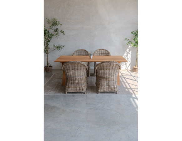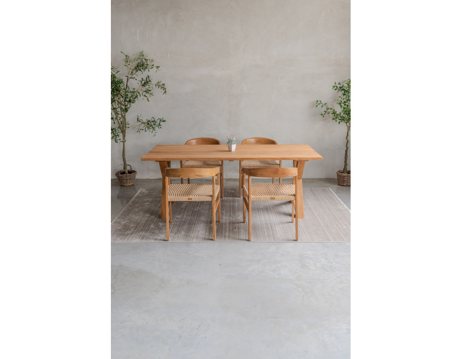 Patas de mesa en forma de cruz, fabricadas en teca de primera calidad.