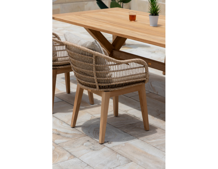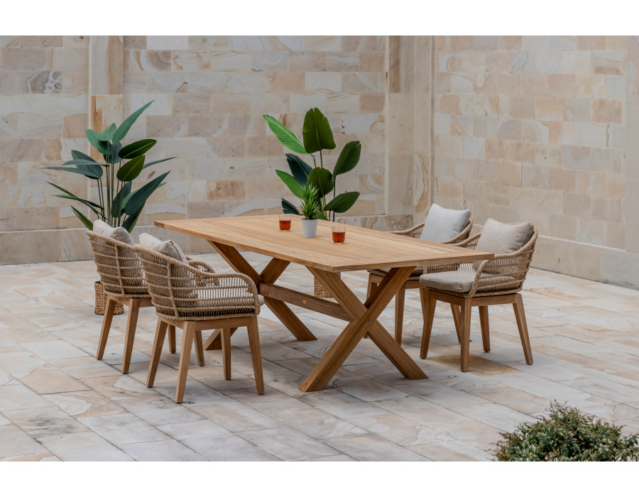 This garden table is the perfect blend of elegance and strength, crafted from high-quality core teak. The design features X-legs that provide excellent stability and a tabletop composed of six beautifully arranged teak planks, making it both a functional and attractive piece for outdoor dining.Key Features:Core Teak Construction: Made from solid core teak...
