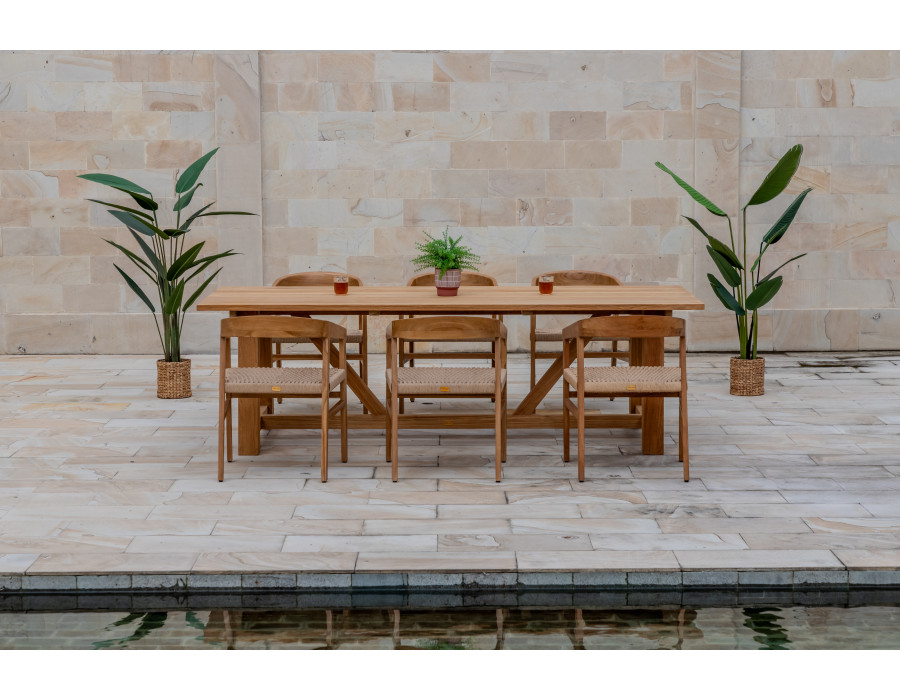 Hercules Garden Furniture Set – 246 cm Core Teak Table w/ 6 Hola Chairs