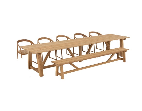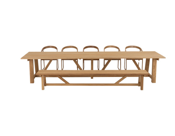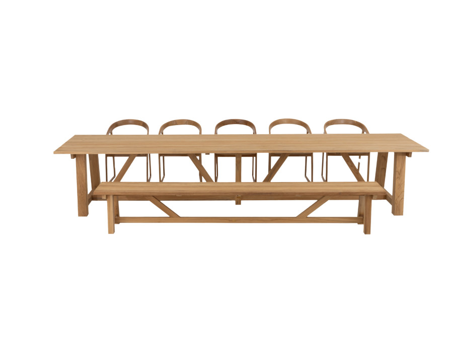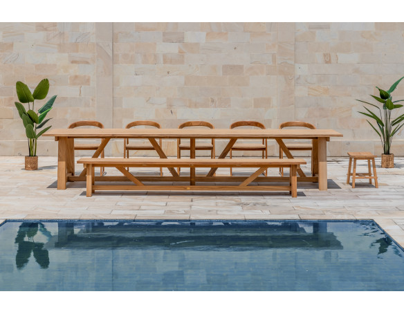 Bench – Solid Teak 290 cmCrafted from high-quality solid teak, this long bench combines natural elegance with robust construction. A refined piece designed to make an impact.