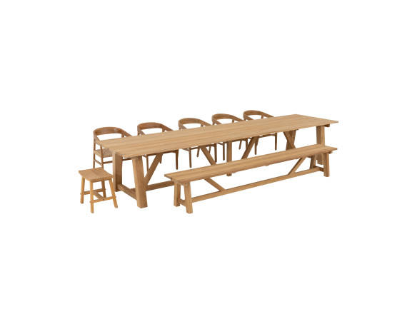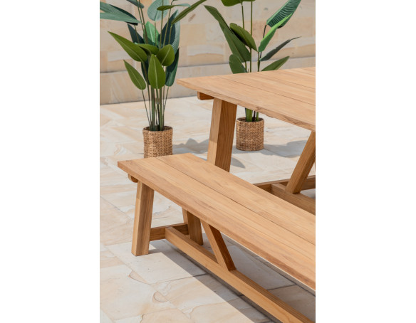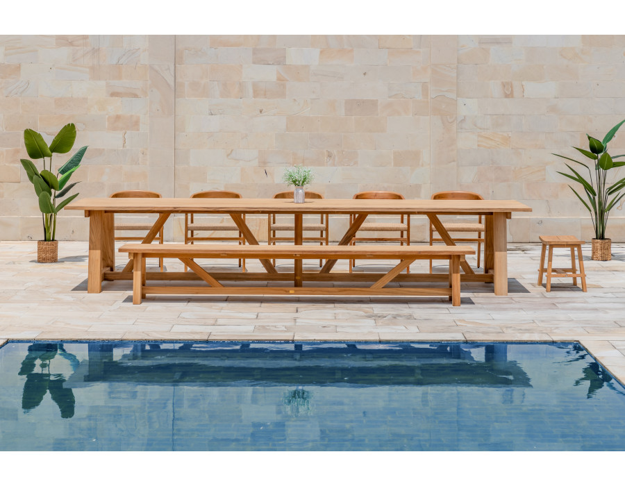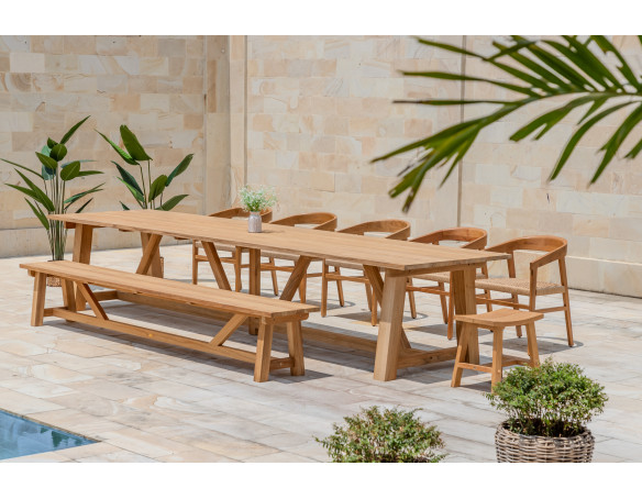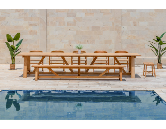 Bench – Solid Teak 290 cmCrafted from high-quality solid teak, this long bench combines natural elegance with robust construction. A refined piece designed to make an impact.