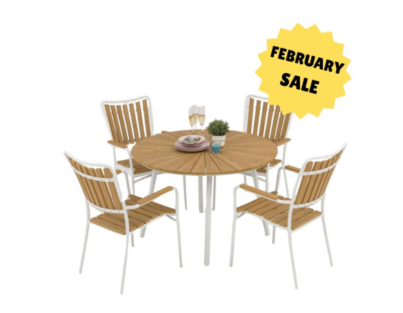 DaneLine Adam Garden Furniture Set WHITE NONWOOD – Ø110 cm w/4 Chairs