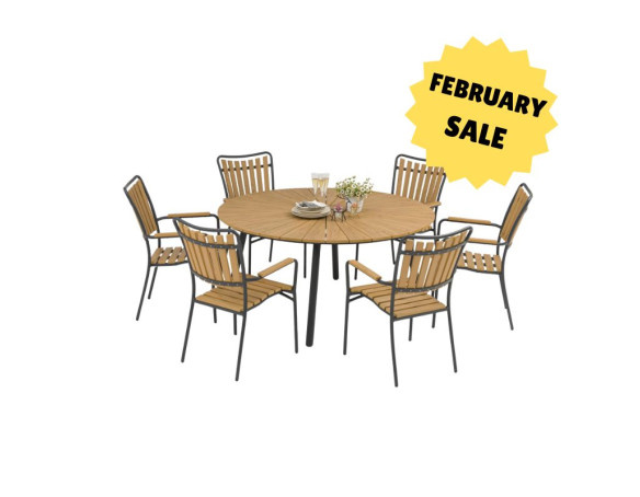 DaneLine Adam Garden Furniture Set GREY NONWOOD – Ø150 cm w/6 Chairs