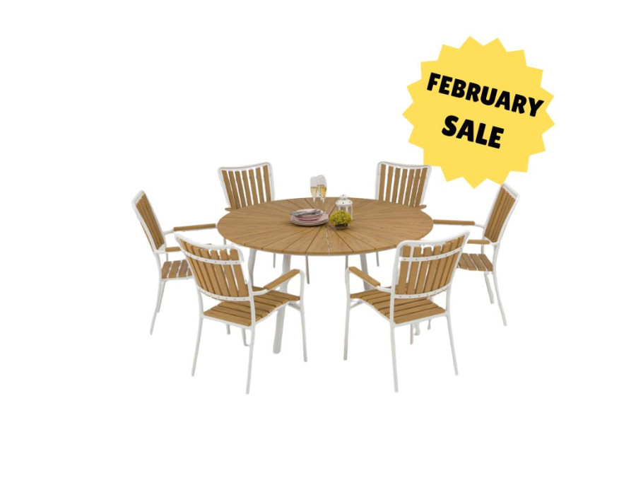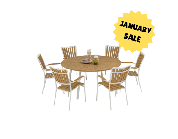 DaneLine Adam Garden Furniture Set WHITE NONWOOD – Ø150 cm w/6 Chairs