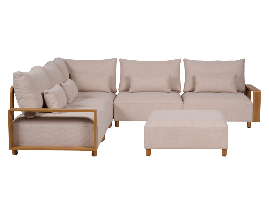 Create an inviting lounge area with this stylish 5-piece lounge set, featuring a spacious 2-seater sofa, corner module, armrest module, centre module, and a matching coffee table.